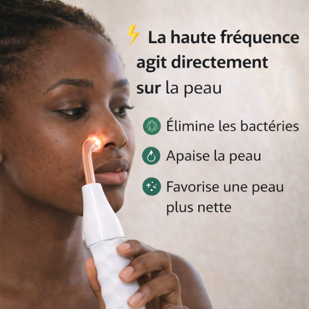 Utilisée régulièrement, la haute fréquence favorise la production de collagène et l’élimination des toxines cutanées. Cela se traduit par une meilleure texture de peau, une réduction visible de l’apparence des ridules et une sensation de fermeté. Vous n’obtenez pas seulement une « peau propre », mais une peau qui respire la santé.